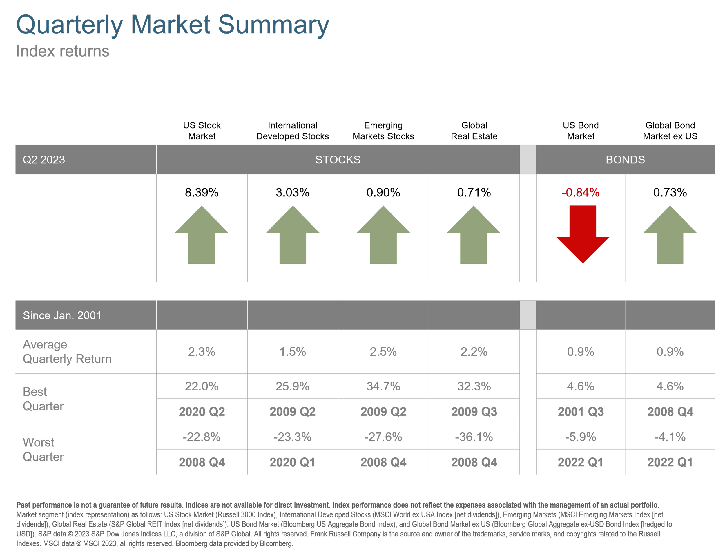 If you would like to review your plan, get in touch. In the meanwhile, you can see the slides below for a visual review of Q2 2023.
